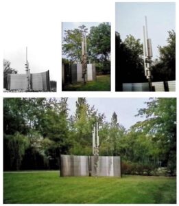 1975, Mur courbe et axiale, acier inox, mur 600 x 200 cm, axiale hauteur 500 cm, Elancourt Maurepas.