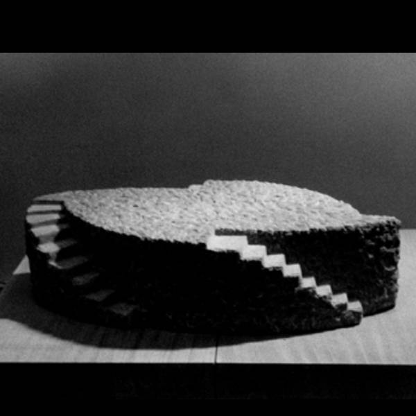 S'agit-il d'un seuil ? d'un carrefour ? Vers quelle espace l'artiste nous propose-t-il de nous rendre au terme de ces marches ? qu'en est-il de ce lieu de rencontre des points cardinaux, parait-il ? Des escaliers nous accueillent à ciel ouvert, en un nouvel espace apparenté à un sommet de ziggourat : au pied de l'infini, toujours.