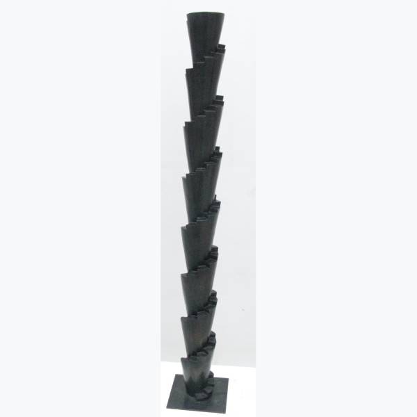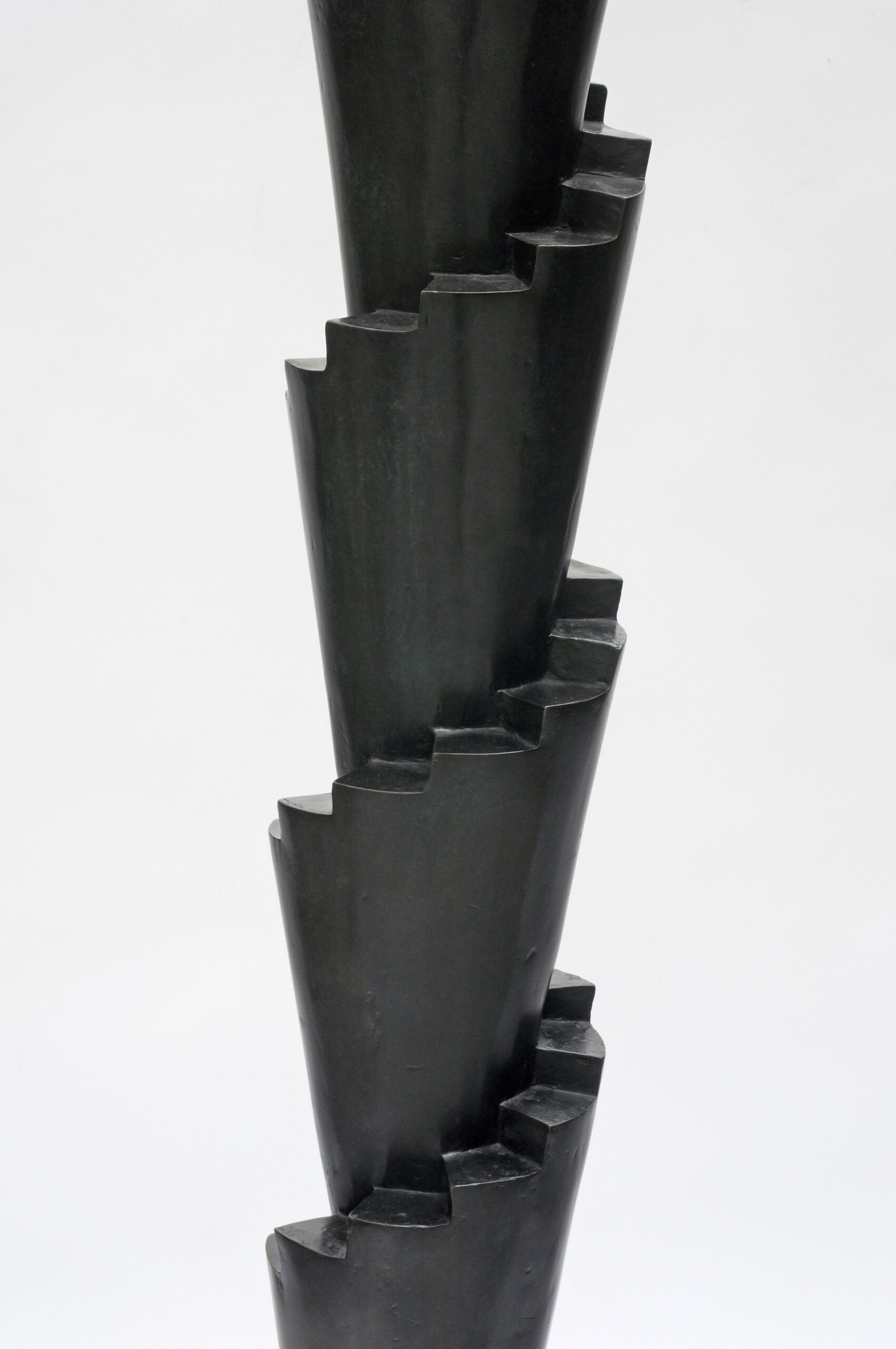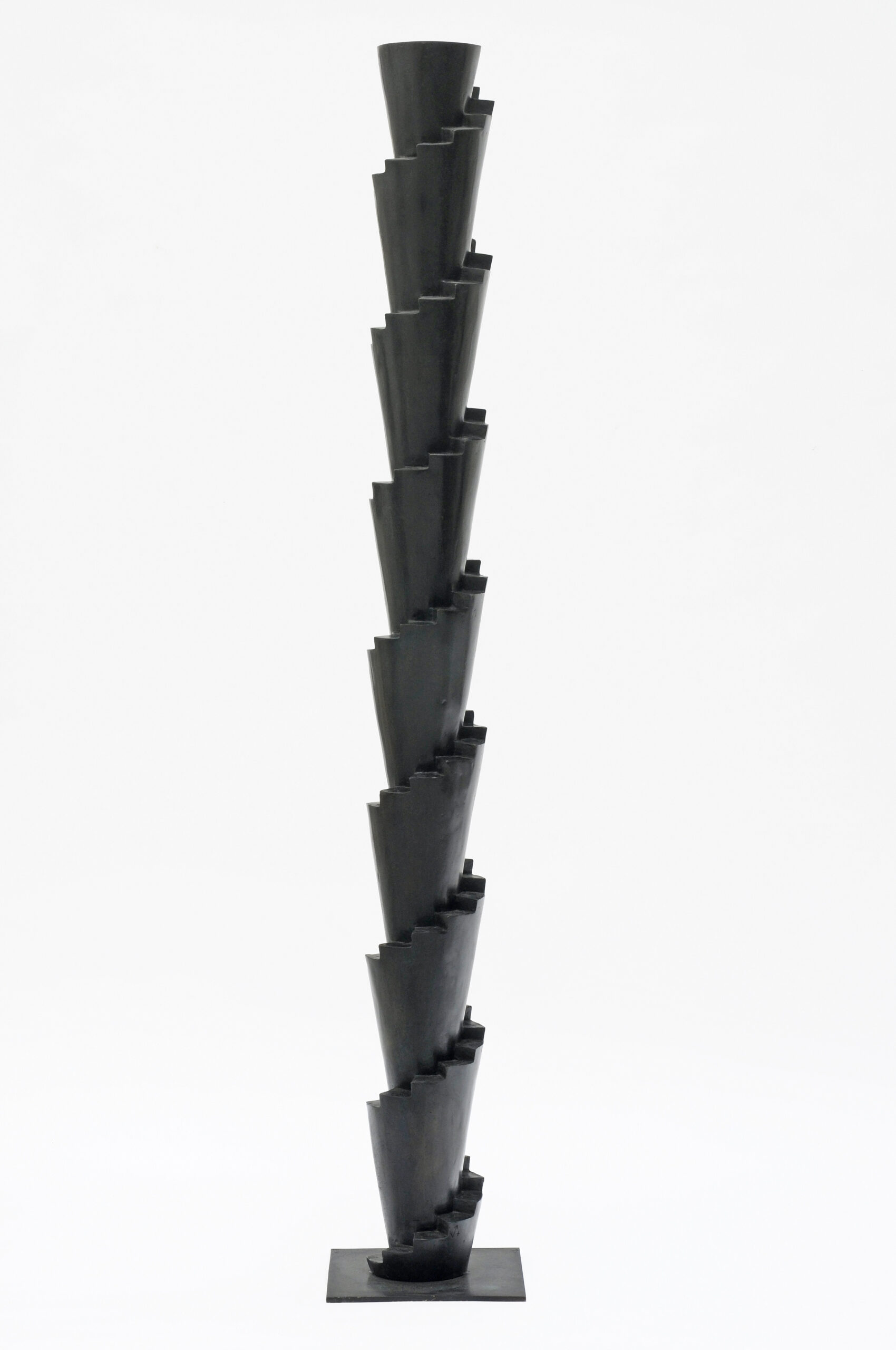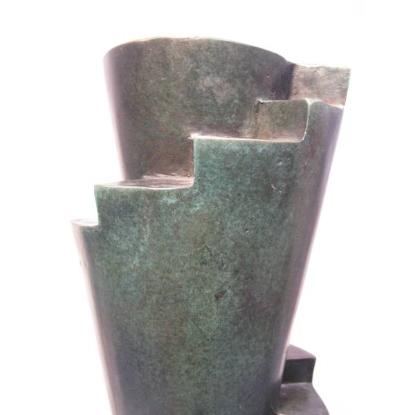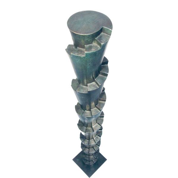 Cette grande ziggourat vertigineuse par son nom, pour sa finesse et sa hauteur tout à la fin, dont le vert de bronze discret lui offre une place en tout espace, ne peut que toucher par sa simplicité, faisant même oublier la froideur de son métal tant elle est douce au regard, pour sa teinte et ses lignes. Elle élève ainsi le regard avec la douceur du velours.