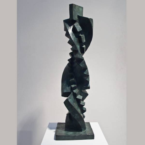 Cette métamorphose, en plus d’une ziggourat cheminant vers les hauteurs, par son mouvement, nous maintient tant qu’elle nous déplace. Sa structure autant que sa patine sont des forces : de contraste, mais pas seulement : aussi par effet de variations, de lumières et d’ombres, de mouvement, de sombre et de brillant, où elle n’apparait ni en équilibre ni en apesanteur, peut-être dans un simple présent sans début ni fin, en évidence.